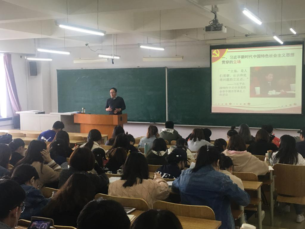 按照新修订的教学大纲,我校继续为本科三年级学生开设《习近平新时代中国特色社会主义思想》专题讲座,旨在用习近平新时代中国特色社会主义思想武装学生头脑,使学生“解其言,知其意,明其理”,切实把习近平新时代中国特色社会主义思想学深悟透,内化于心,外化于行。4月13日——5月11日,党委书记孙先民,党委副书记刘吉昌,副校长张林分别走进思政课堂,为同学们奉上了精彩的思政课。