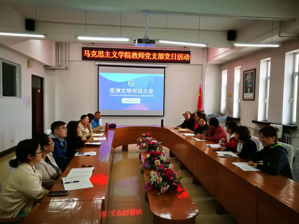 全体党员一致表示,要深刻领会习近平主席在亚洲文明对话大会上讲话的丰富内涵和精神实质,进一步增强“四个意识”、牢固树立“四个自信”,做到“两个维护”,立足本职工作,履行好党员职责和新时代高校思政课教师的历史使命;要教育引导青年学生深入理解亚洲文明交流互鉴、和谐共生的历史与现实,科学理性认识当前中美贸易摩擦问题,让青年学生认识到,中国改革开放的步伐永远向前,中国推动构建人类命运共同体的努力永远向前,世界是多样的,人类文明是多彩的,各种不同文明只有坚持相互尊重,致力于平等协商,才能推动人类文明进步和世界和平发展。