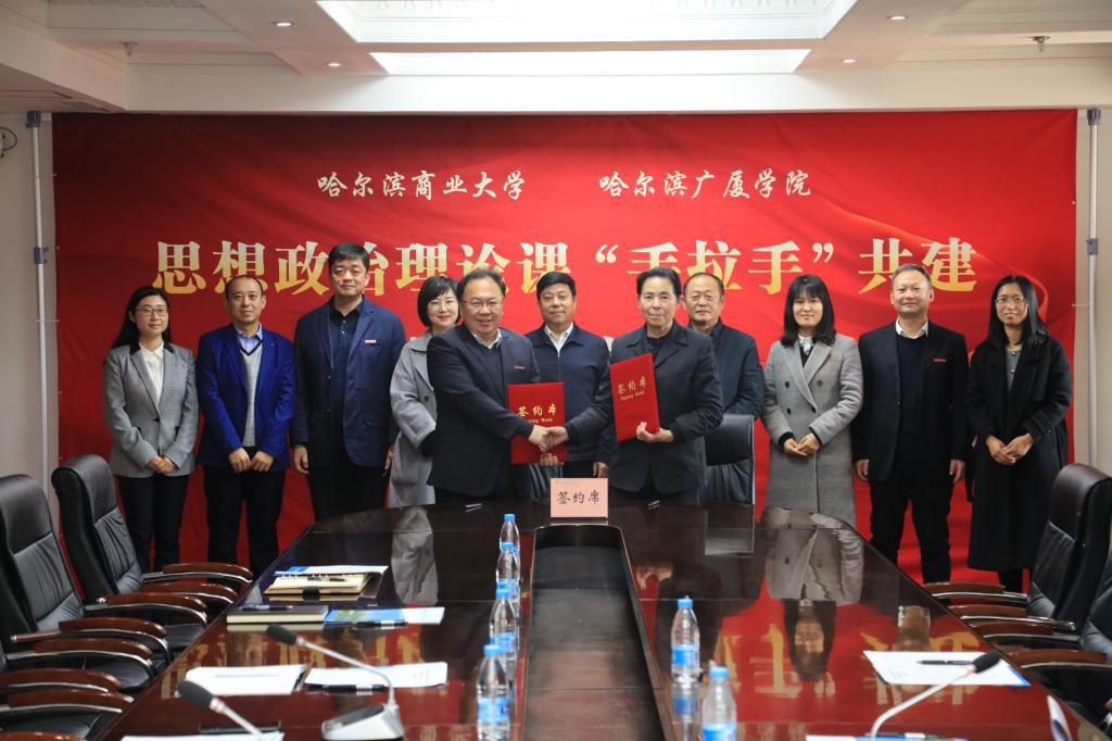 我校与哈尔滨广厦学院思政课“手拉手”共建签约,标志着双方合作迈上了新台阶,双方将进一步完善沟通机制,细化合作内容、方式和途径,在集体备课、课程育人、资源共享、教研活动、教师交流等重点任务上协同发力,持续开展全方位、立体化的深度合作,努力推动形成校际联动“大思政”协同互动格局,发挥思政课在铸魂育人、立德树人教育体系中的“压舱石”作用。此次思政课“手拉手”共建活动,是我校进一步探索深化新时代思政课改革创新的又一项真招实举,我校将积极推进各项合作共建工作落地落实落细,发挥示范引领和辐射带动作用,为深化全省学校思政课改革创新做出贡献。