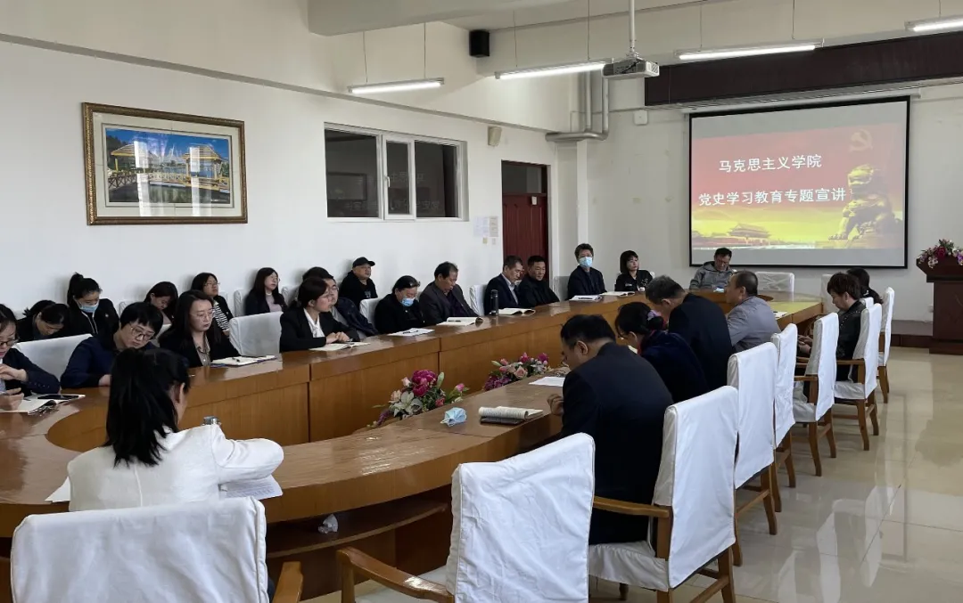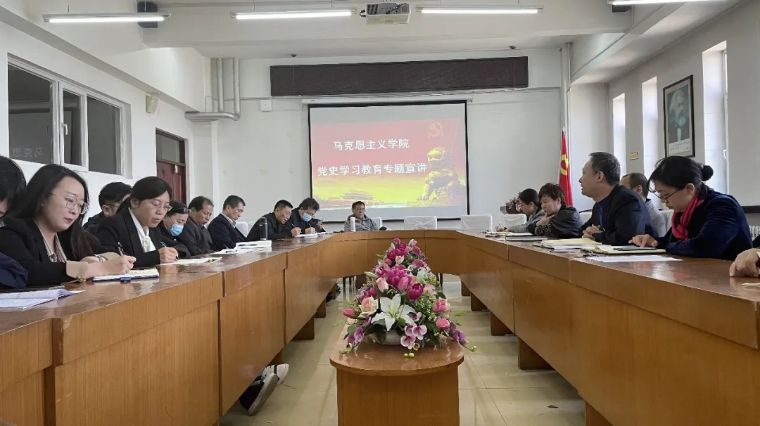 5月12日,马克思主义学院在会议室举行党史学习教育活动,史学博士、学院院长于景洋教授为全院教师做了题为“学好党史 讲好思政课”专题辅导,学院全体教师参加了会议。