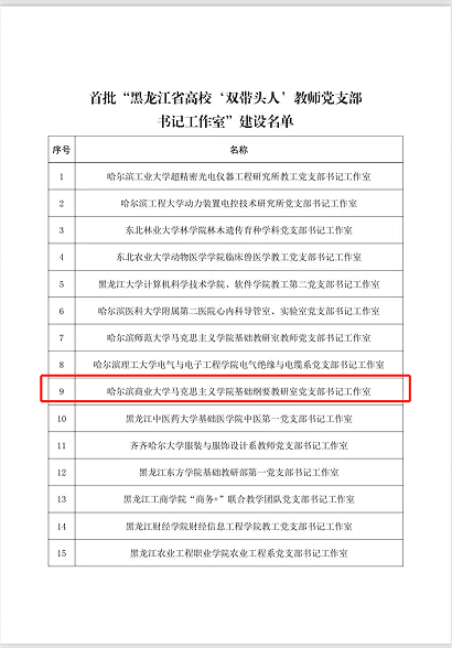 近日,省委教育工委发布《首批“黑龙江省高校‘双带头人’教师党支部书记工作室”遴选结果公示》。经我校党委推荐、省委教育工委组织专家评审,我院基础纲要教研室党支部书记工作室入选首批“黑龙江省高校‘双带头人’教师党支部书记工作室”建设名单。