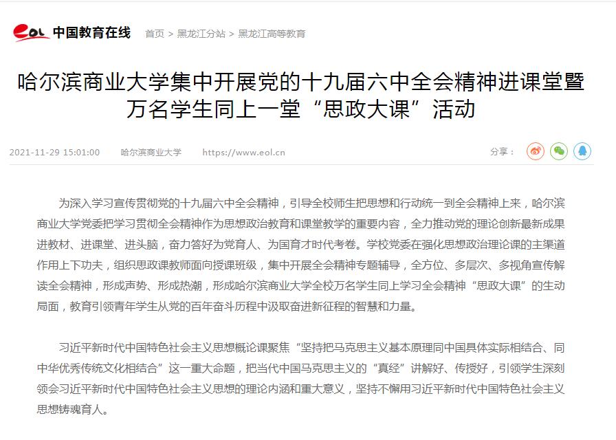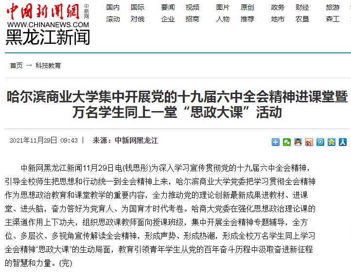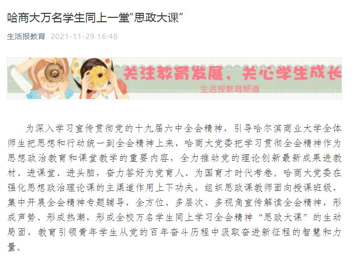 近日,为深入学习宣传贯彻党的十九届六中全会精神,引导全校师生把思想和行动统一到全会精神上来,学校党委把学习贯彻全会精神作为思想政治教育和课堂教学的重要内容,全力推动党的理论创新最新成果进教材、进课堂、进头脑,奋力答好为党育人、为国育才时代考卷。学校党委在强化思想政治理论课的主渠道作用上下功夫,组织思政课教师面向授课班级,集中开展全会精神专题辅导,全方位、多层次、多视角宣传解读全会精神,形成声势、形成热潮,形成全校万名学生同上学习全会精神“思政大课”的生动局面,教育引领青年学生从党的百年奋斗历程中汲取奋进新征程的智慧和力量。