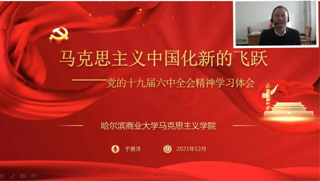 12月1日下午,学校学习贯彻党的十九届六中全会精神宣讲团举行第二轮专题宣讲报告会。报告会以视频会议形式召开,学校领导班子成员,机关党委、轻工学院党委全体教师参加报告会。轻工学院党委书记孙振宝主持会议。