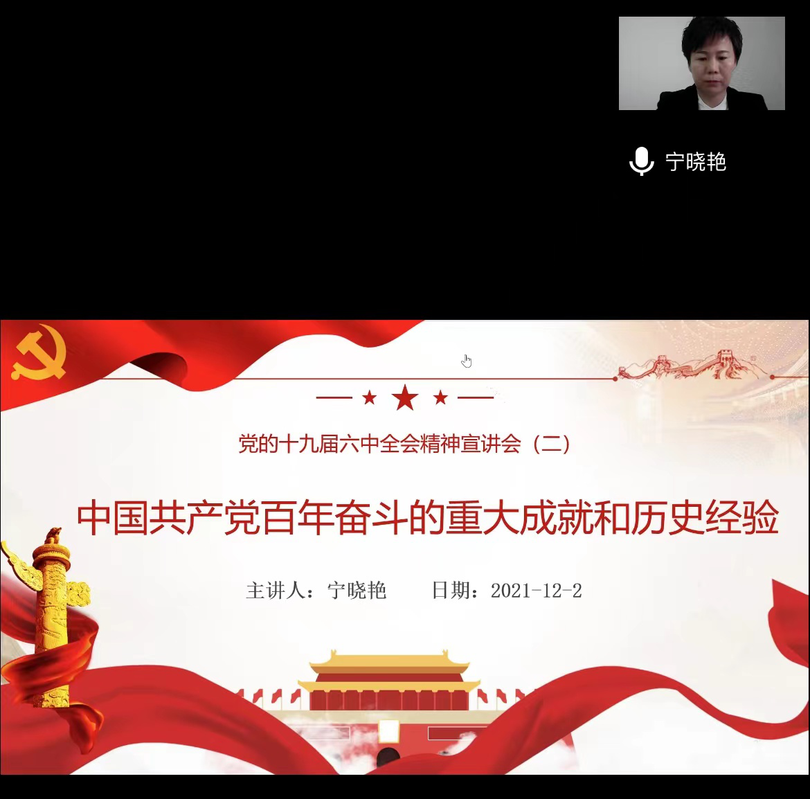 为深入学习贯彻党的十九届六中全会精神,学校党委第一时间谋划部署,统筹推进研究学习、贯彻落实、宣传教育等各项工作。学校学习贯彻党的十九届六中全会精神宣讲团于12月1日、12月2日举行了两场线上宣讲活动。会计学院党委、经济学院党委、图书馆与网络教育技术中心联合党总支和英才学院党委全体教师参加报告会。