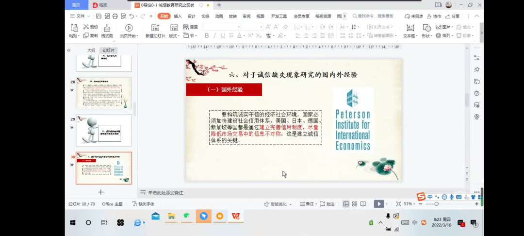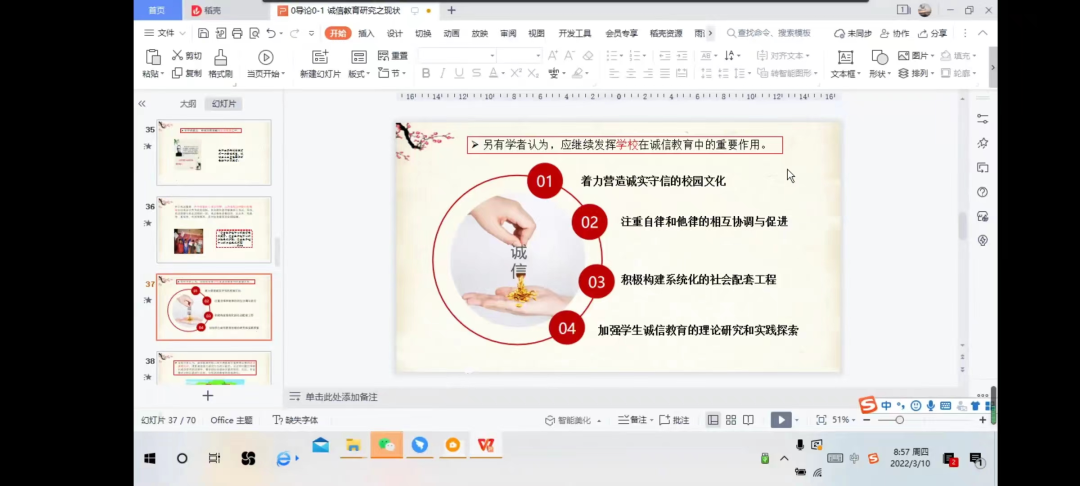 为深入贯彻习近平总书记关于诚信建设的重要指示精神,大力培育和弘扬社会主义核心价值观,马克思主义学院基于新时代推进诚信文化建设的重要意义,基于新时代大学生思想道德素质的提升需要,基于商科学校办学特色和人才培养目标,开设《诚信文化与思想政治教育》研究生专业课,由刘春元教授担任主讲教师。