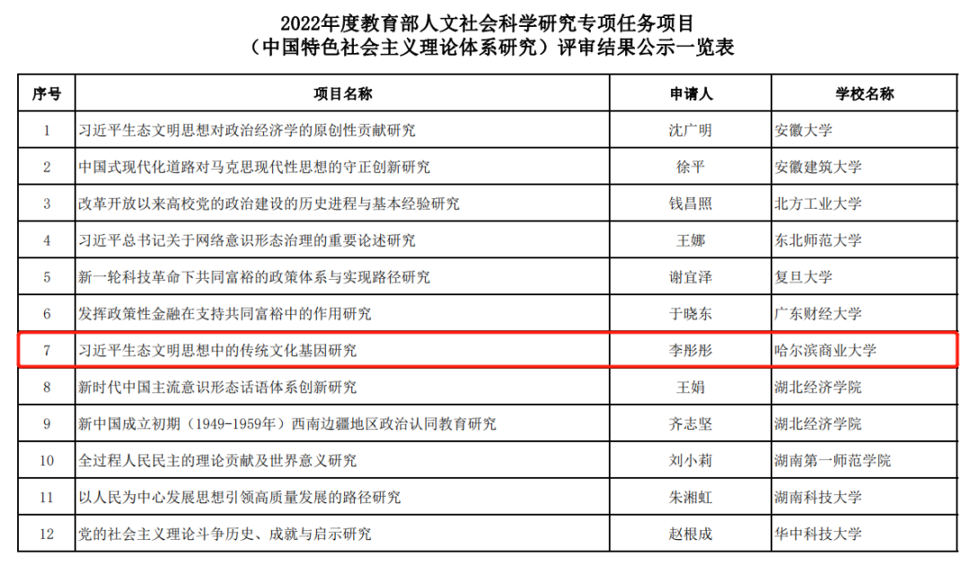 近日,教育部社科司公布了2022年度教育部人文社会科学研究一般项目的评审结果,结果显示,2022年度规划基金、青年基金、自筹经费项目共2617项通过专家评审;西部和边疆地区项目165项,新疆项目19项,西藏项目1项通过专家评审。中国特色社会主义理论体系研究专项30项,高校辅导员研究专项208项通过专家评审。马克思主义学院教师李彤彤喜中2022年度教育部人文社会科学研究专项任务项目(中国特色社会主义理论体系研究)。