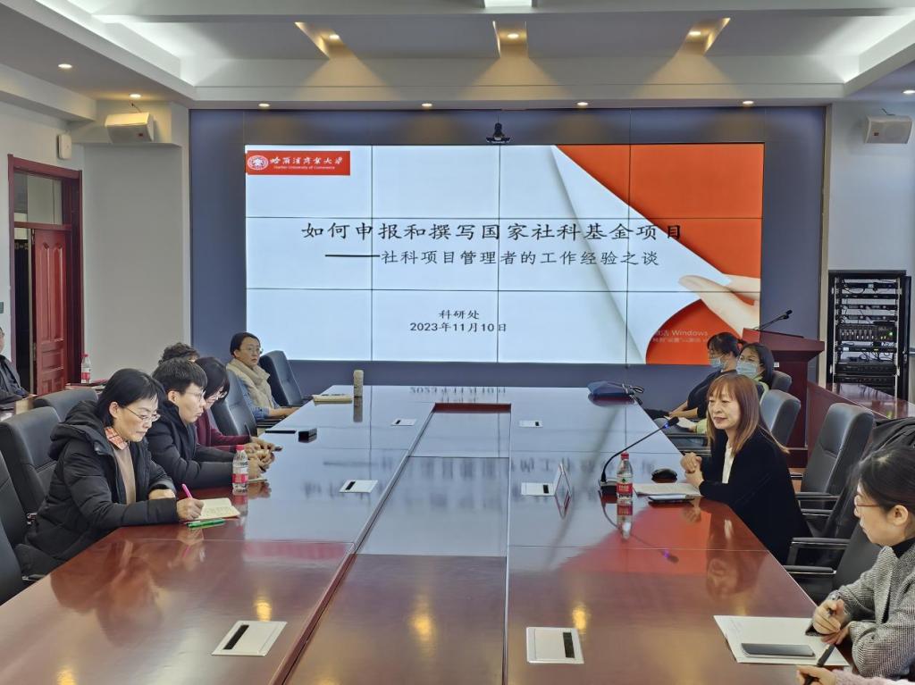 在2024年度国家社科基金项目即将申报之际,为提升学院教师申报积极性、主动性,增强信心,凝聚共识,12月6日下午,马克思主义学院在主楼0921会议室召开2024年度国家社科基金项目申报动员暨辅导工作会,会议邀请科研处负责社会科学项目管理的刘红娜老师为大家做国家社科项目申报经验分享,马克思主义学院全体教师参加会议。会议由马克思主义学院科研副院长郑秋月主持。刘红娜老师从社科项目管理者的工作经验着手,首先介绍国家社科基金项目总体情况概述,然后从国家社科基金项目申报范式与要点等方面进行经验分享和指导如何申报和撰写国家社科基金项目。