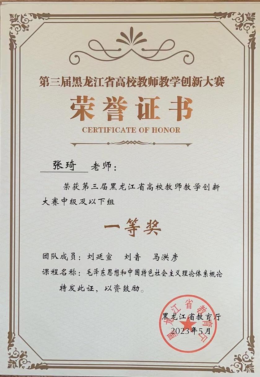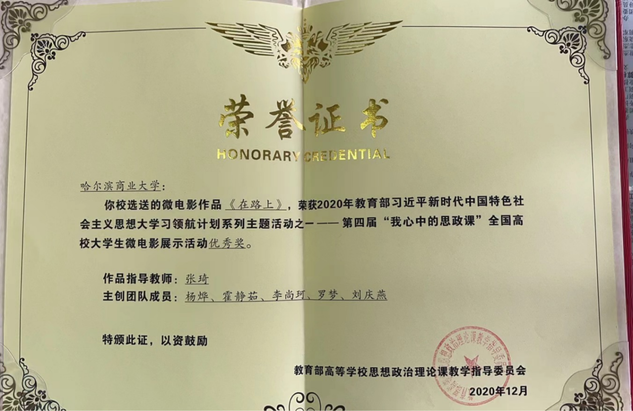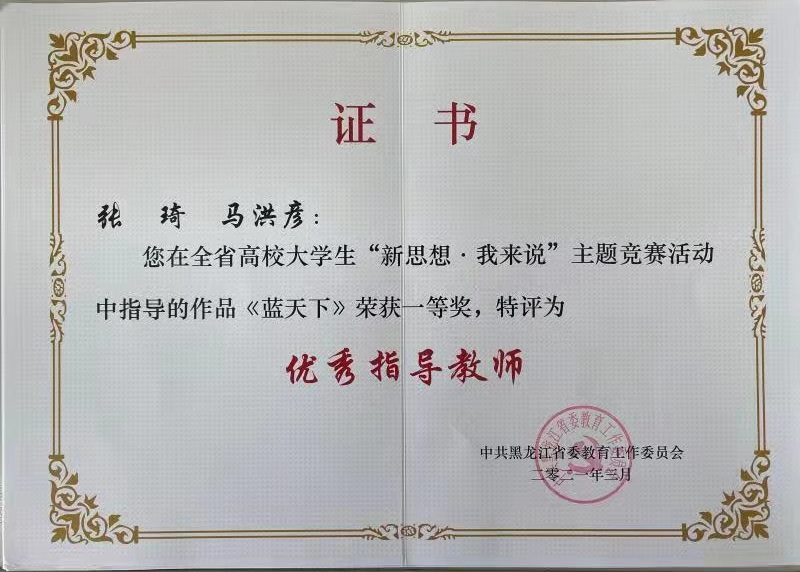 四是三堂联动思政育人,赋温度扩广度。打造课堂教学第一课堂主阵地,以学院习近平新时代中国特色社会主义思想学习社团为依托,打造校内实践第二课堂,以服务地方、大学生讲思政课等形式主动践行社会实践第三课堂。三堂联动,协同育人。近年来,指导学生参加教育部“我心中的思政课”微电影展示活动荣获多项优秀奖,参加黑龙江省“新思想·我来说”主题竞赛荣获一等奖2项,二等奖1项。