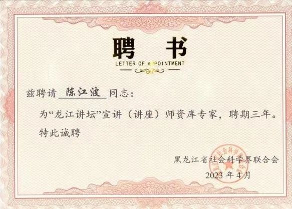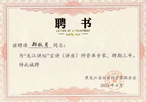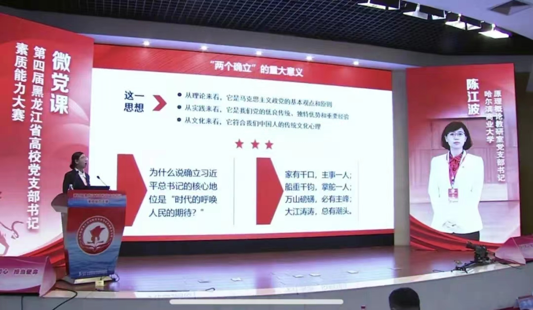 陈江波副院长荣获第四届黑龙江省高校党支部书记素质能力大赛二等奖,她主讲的党课《点“绿”成金——践行习近平生态文明思想的龙江答卷》喜获“党课开讲啦”活动精品党课特别奖和先进个人最佳撰稿奖两项殊荣。