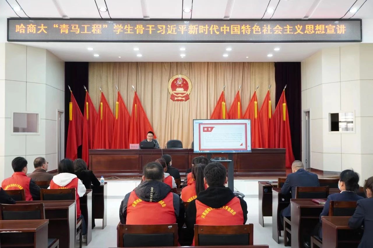 杨涵元作为第十五期哈尔滨商业大学“青马工程”学生骨干培训班班主任,在组织开展了多场校内宣讲活动的基础上,带领团队深入尚志市尚志中学、逸夫中学、一曼中学等多所中小学开展学习习近平新时代中国特色社会主义思想主题宣讲活动,带领当地团员和青年多方位、立体化深入领悟习近平新时代中国特色社会主义思想蕴含的价值伟力,进一步坚定“四个自信”、做到“两个维护”。杨涵元还带领团队赴尚志市尚志中学,结合专业优势特长,就“关于深入实施大中小思政课一体化建设”等课题开展调研活动。寒暑假期间,他还多次赴尚志市尚志镇、黑龙宫镇等地,为当地政府机关单位青年干部、社区青年志愿者宣讲新时代推动东北全面振兴座谈会精神。