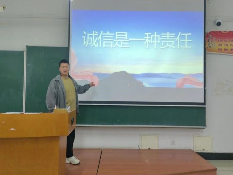 人无信不立,业无信不兴。诚信自古以来就是中华民族的传统美德。为进一步弘扬中华优秀传统文化,培育和践行社会主义核心价值观,强化学生诚信意识,深化学校“一体两翼”文化育人模式,营造诚信为本的校园文化氛围,形势与政策课组织了以“诚信始于心 文明践于行”为主题的课前5分钟诚信教育教学。