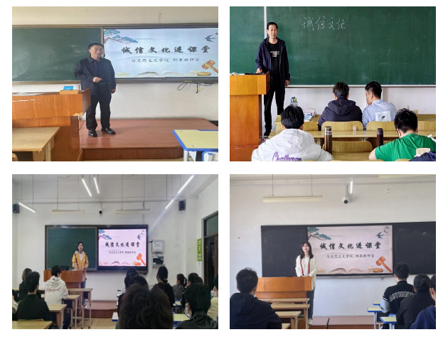 落实《哈尔滨商业大学诚信文化建设实施方案》,马克思主义学院于5月13日至20日全面组织“讲好课前五分钟 诚信教育进课堂”活动,中国近现代史纲要课全体教师,通过“课前五分钟”活动,将诚信教育融入课堂,引导学生将诚信内化于心,外显于行。
