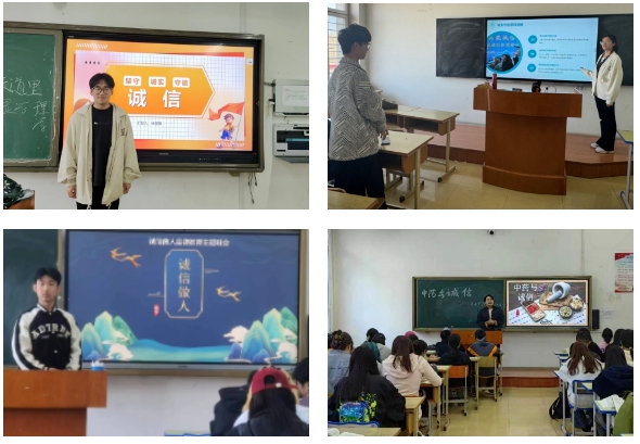 为弘扬中华民族传统美德,扎实推进社会主义核心价值观教育,强化师生诚信意识,深化学校“一体两翼”文化育人模式,营造诚信为本的校园文化氛围,近日,马克思主义学院思想道德与法治教研室组织了以“课前五分钟”为主题的诚信教育活动,引导学生将诚信内化于心,外显于行。