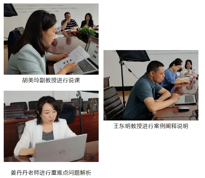 第一阶段为备课环节,由绥化学院马克思主义学院新思想概论教研室三位教师进行展示。胡美玲副教授对第四章《坚持以人民为中心》进行说课,胡老师从教学分析、教学目标、框架结构、教学重难点、教学方法、教学过程、教学反思七个维度进行说课分析;姜丹丹老师围绕第四章《坚持以人民为中心》进行重难点问题解析;王东明教授就《阿布洛哈村“蝶变”》案例如何在第四章教学过程中应用进行阐释说明。