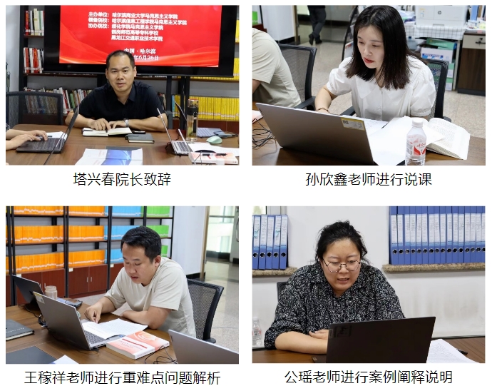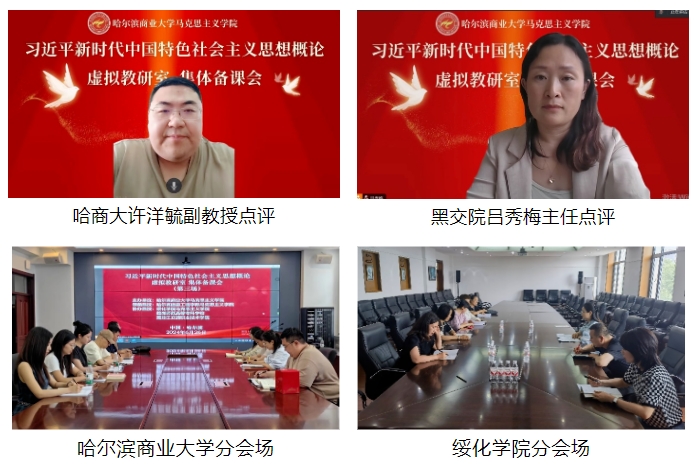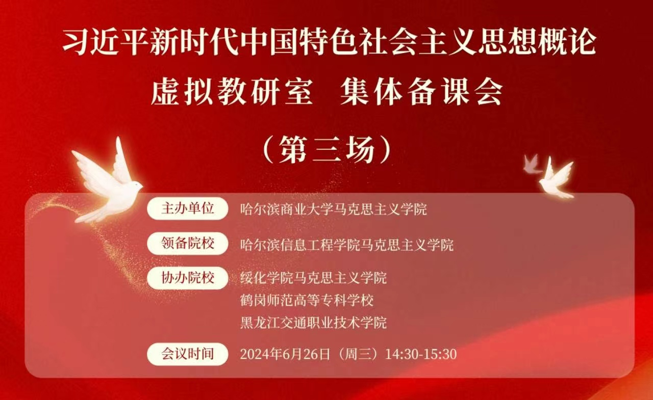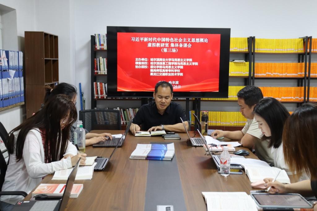 6月26日下午,由哈尔滨商业大学马克思主义学院牵头,绥化学院、哈尔滨信息工程学院、鹤岗师范高等专科学校、黑龙江交通职业技术学院共计5所院校“新思想概论”课教师协同参与的新思想概论课虚拟教研室第三次集体备课活动顺利举行,本次备课活动由哈尔滨信息工程学院马克思主义学院领备,采用线上与线下相结合方式。