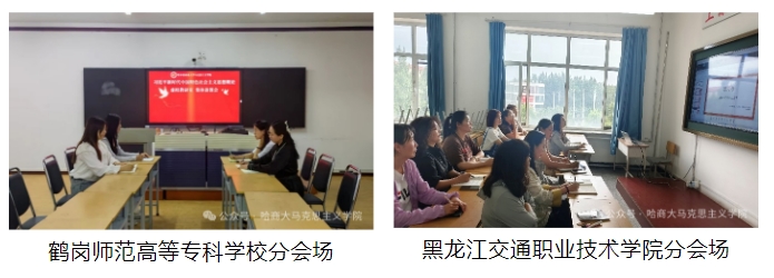 第二阶段为点评环节,点评教师为哈尔滨商业大学马克思主义学院新思想概论教研室副教授许洋毓、黑龙江交通职业技术学院基础部(思政部)新思想概论教研室主任吕秀梅。许洋毓老师指出,“发展全过程人民民主”是新时代中国特色社会主义建设总体布局的重要组成部分,新时代中国特色社会主义事业“五位一体”总体布局是一个相互联系、相辅相成的有机整体,其中,中国特色社会主义民主政治建设、发展社会主义政治文明是总体布局的基础部分和根本保证,在教学过程中要讲好“发展全过程人民民主”的实践道理哲理。吕秀梅老师指出,教育不是填鸭式的灌输,而是引导式的启发,三位老师从说课内容的把握、教学重难点问题剖析、教学案例的选取等方面都体现了对理论把握的准确和深入,所以讲出的内容更加鲜活、生动和有效,值得学习。5所院校共计50名新思想概论课教师在分会场同步观摩学习。