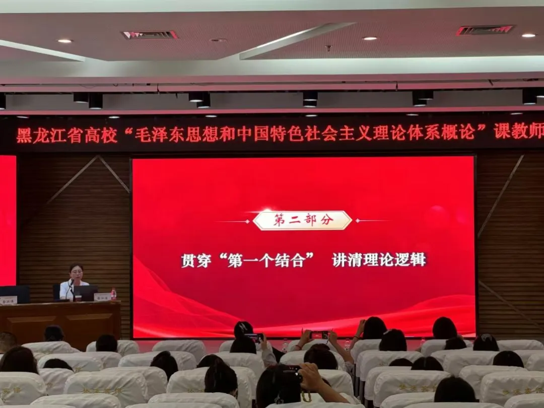 8月29日,由黑龙江省教育厅主办,黑龙江省高校“毛泽东思想和中国特色社会主义理论体系概论”教学指导委员会承办的黑龙江省高校“毛泽东思想和中国特色社会主义理论体系概论”课教师培训在哈尔滨师范大学举办。黑龙江省高校“毛泽东思想和中国特色社会主义理论体系概论”分教学指导委员副主任委员、哈尔滨商业大学马克思主义学院副院长陈江波做题为《贯穿“两个结合” 整体把握“概论”课教材体系》的主题讲座。