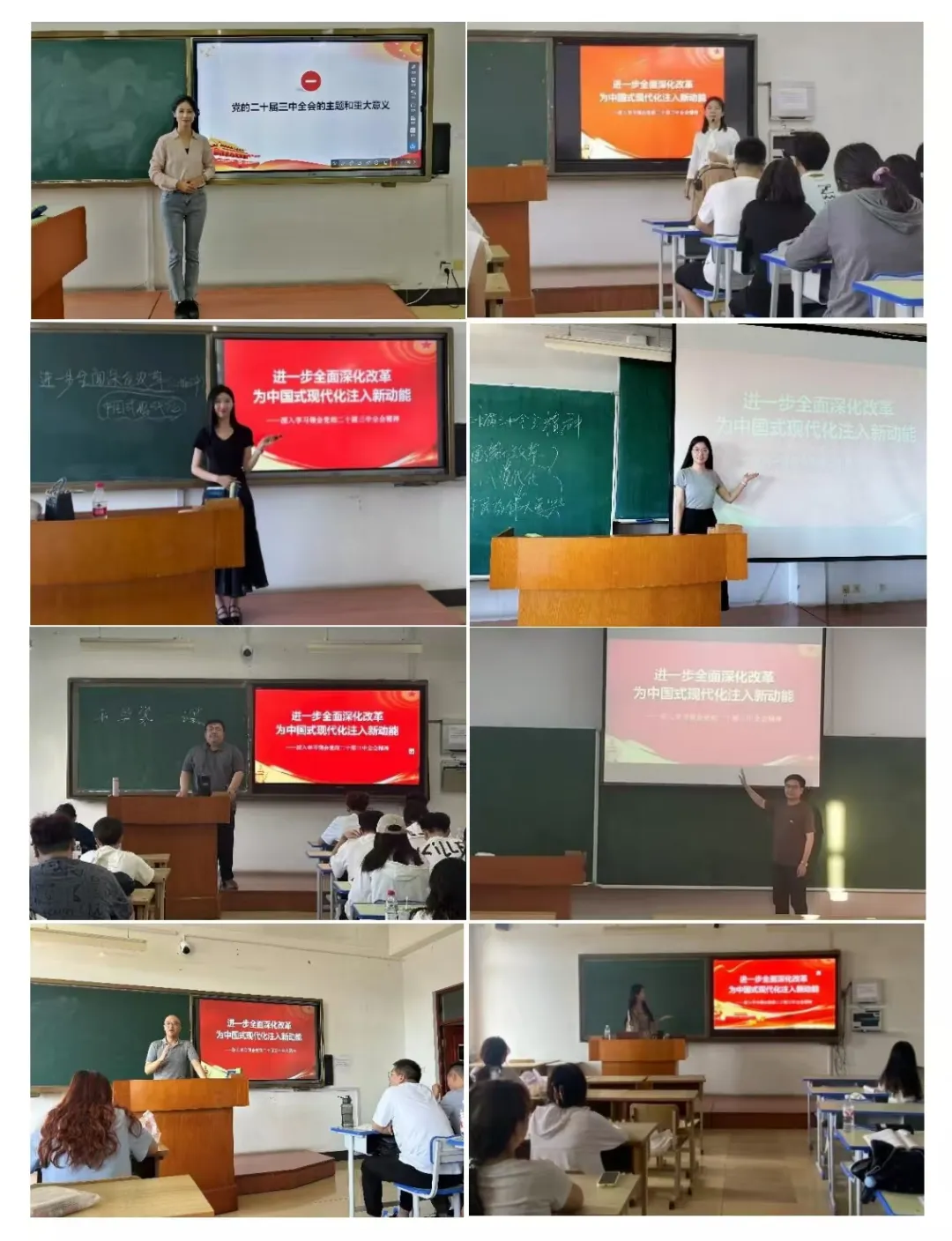 学院组织教师集体备课,以《中国共产党第二十届中央委员会第三次全体会议公报》《中共中央关于进一步全面深化改革推进中国式现代化的决定》为重点,深入学习党的二十届三中全会的重大意义、指导思想、总体思路、重大原则和系统部署、深入理解习近平总书记关于全面深化改革的一系列新思想、新观点、新论断。在此基础上,统一授课教案和课件,结合各门课程具体内容将会议精神全面融入课堂教学。