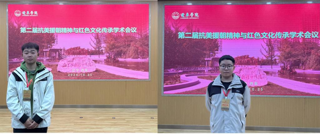 10月25日至26日,由辽东学院主办,辽宁省抗美援朝精神研究基地、丹东市教育局、丹东市社会科学界联合会、抗美援朝纪念馆、中共丹东市委党史研究室共同承办的第二届抗美援朝精神与红色文化传承学术研讨会在辽东学院举行。哈尔滨商业大学马克思主义学院2023级研究生黄衍川、张淇茗受邀参会。