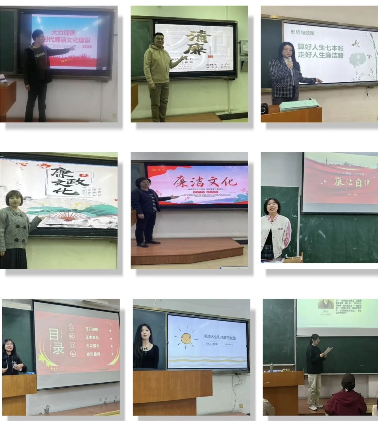 为深入学习党的二十大、二十届三中全会精神,贯彻落实党中央《关于加强新时代廉洁文化建设的意见》,围绕落实立德树人根本任务,推进新时代廉洁文化建设,马克思主义学院形势与政策教研室在学校“廉洁文化节”期间,全面开展“廉洁文化进课堂”活动,引导教育学生“厚植廉洁奉公文化基础,做廉洁自律时代新人”。
