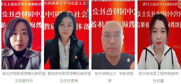 第二阶段为点评环节,点评教师为绥化学院马克思主义学院新思想概论教研室主任姜丹丹、鹤岗师范高等专科学校思政部新思想概论教研室主任任雪梅、哈尔滨商业大学马克思主义学院新思想概论教研室讲师杨崇、哈尔滨信息工程学院马克思主义学院新思想概论教研室讲师孙欣鑫。