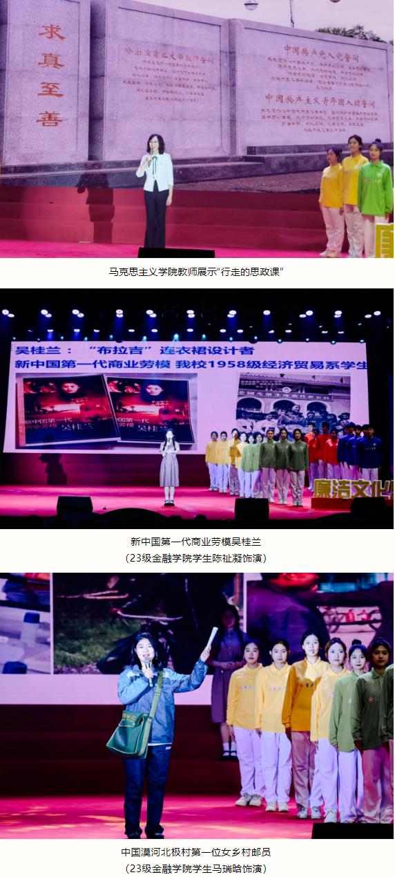 《强商报国》采用讲解和演绎的形式进行现场教学,大中小学师生同台讲述了一堂生动感人的“行走思政课”。作为教育部大中小学思政课一体化共同体建设成员单位,该作品由哈尔滨商业大学党委宣传部和马克思主义学院共同统筹,哈尔滨商业大学金融学院、哈尔滨新区师范附属小学校、哈尔滨新区第一学校共计60余名大中小学师生共同参演。
