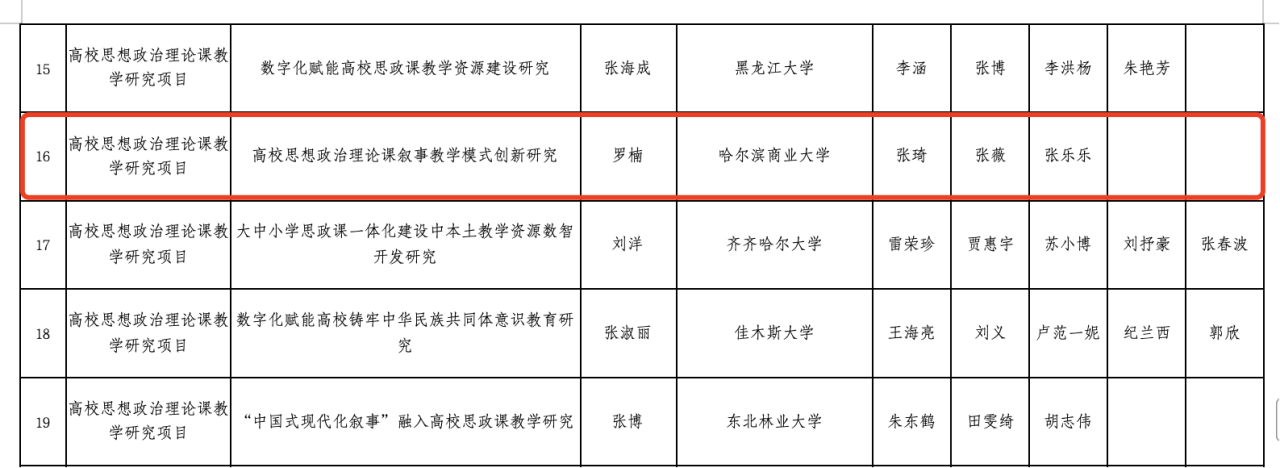 近日,黑龙江省教育厅公布了2024年度高等教育教学改革项目思想政治理论课教学改革研究专项立项名单。我院罗楠、马洪彦两位教师成功获批立项。