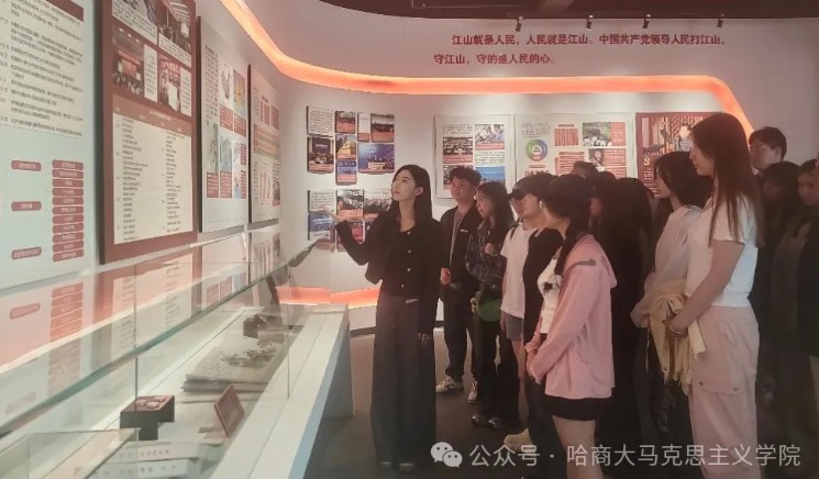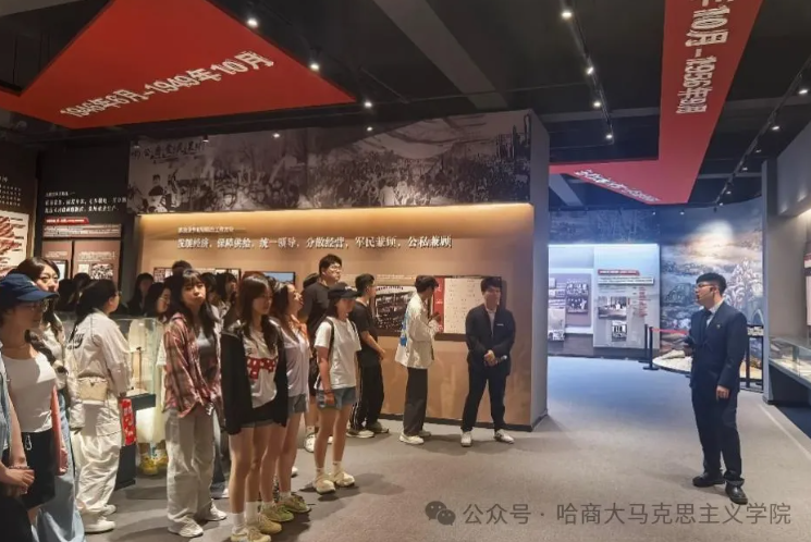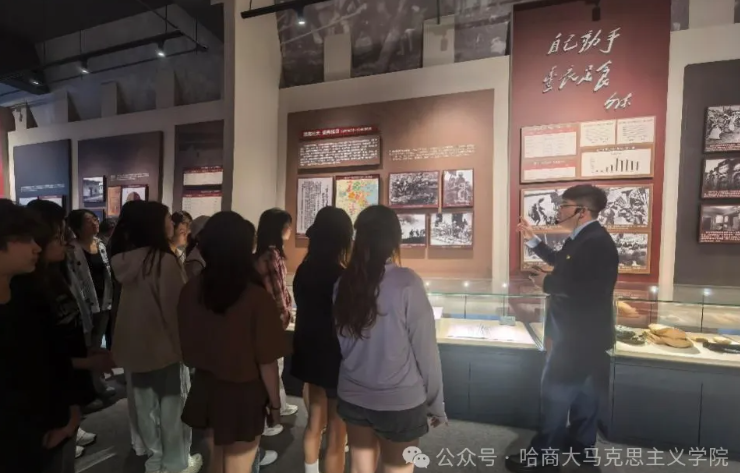 为深入贯彻落实习近平总书记关于“大思政课”建设的重要指示精神,有效发挥“大思政课”立德树人作用,坚持不懈用习近平新时代中国特色社会主义思想铸魂育人,马克思主义学院教师程宝、李婧带领2023级硕士研究生和习近平新时代中国特色社会主义思想概论课程本科学生,赴黑龙江财经学院红色财经之路博物馆,开展一场沉浸式“场馆中的思政课”。