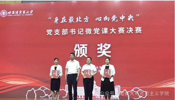 为庆祝中国共产党成立104周年,深入学习贯彻习近平新时代中国特色社会主义思想,全面落实党的二十大和二十届二中、三中全会精神,深刻践行习近平总书记视察黑龙江期间重要讲话重要指示精神,持续提升党支部书记履职能力和党员教育质效,6月30日,哈尔滨商业大学“身在最北方、心向党中央”党支部书记微党课大赛决赛在专家公寓报告厅举办。校党委书记赵广,校党委副书记、校长李景义,校党委副书记、工会主席田成义,校党委副书记姜国峰,党委常委、宣传部部长贾妮燕,党委常委、统战部部长白云龙,相关部门负责人,各基层党组织书记、副书记,党支部书记及党员代表现场观摩。