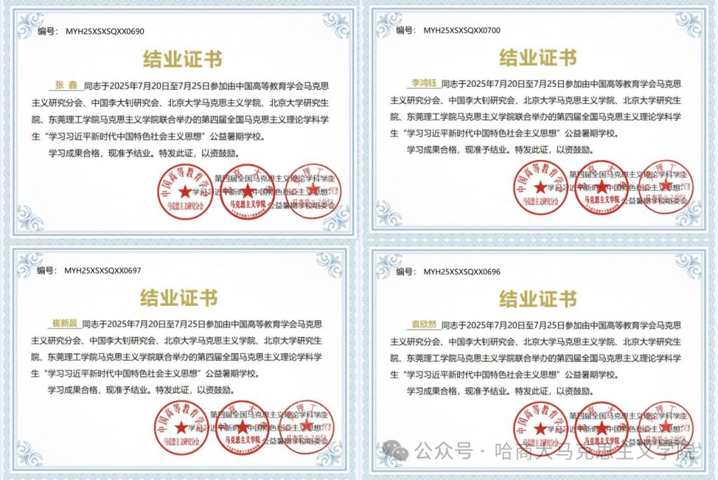 学习期间,我院研究生严格遵守纪律,全程在线参与集中学习、认真记录笔记,最终均顺利获得结业证书,不仅积累了专业知识,更筑牢了思想根基、拓展了学术视野。
