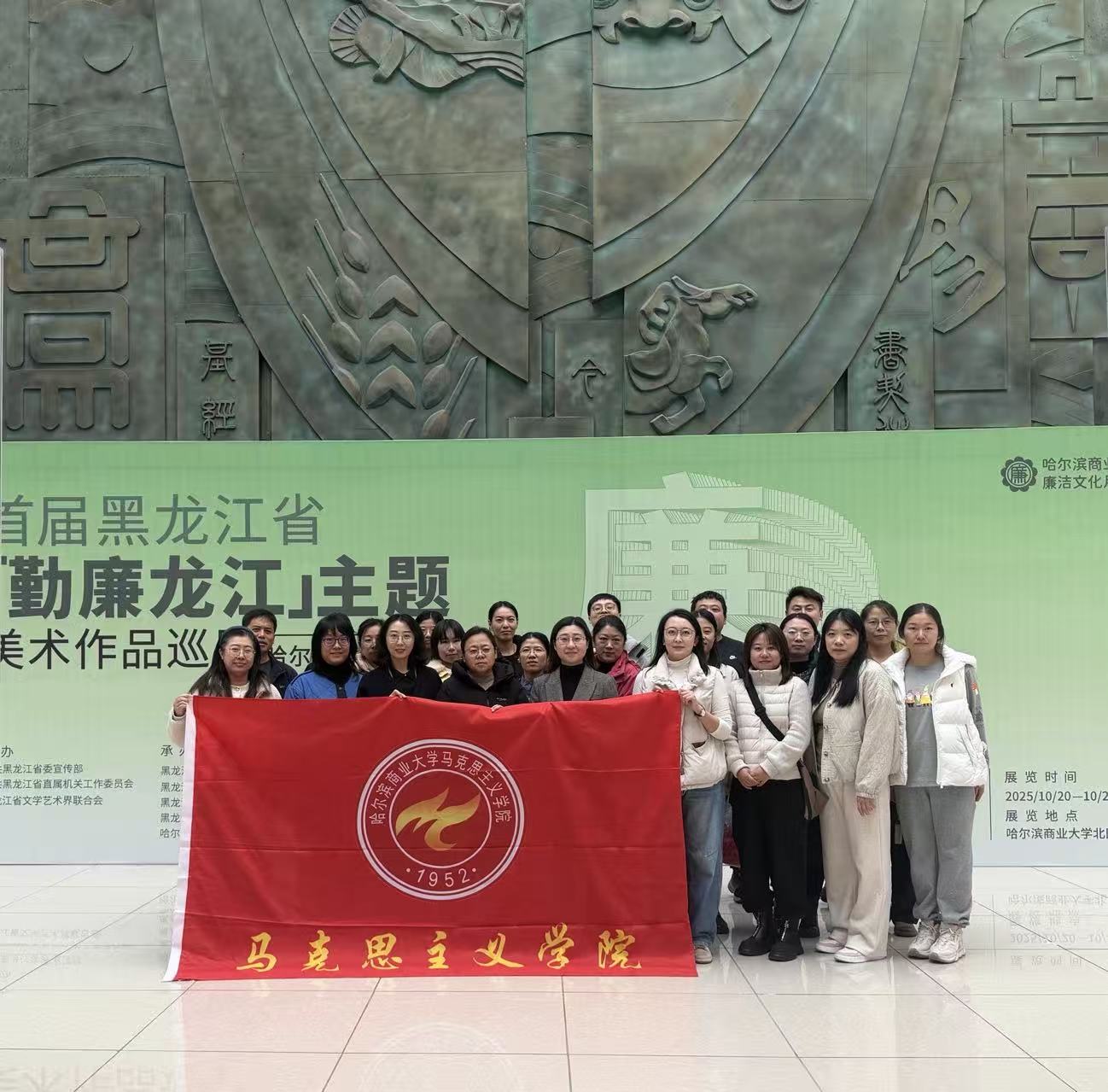 为深入学习贯彻习近平新时代中国特色社会主义思想,将廉洁教育与思想政治教育深度融合,引导学院教师筑牢廉洁自律思想防线,厚植廉洁育人文化土壤,2025年10月22日,马克思主义学院党委组织全体教师党员参观首届黑龙江省“勤廉龙江”主题美术作品展览,以沉浸式学习感悟廉洁力量,为思政教育注入“廉动力”。