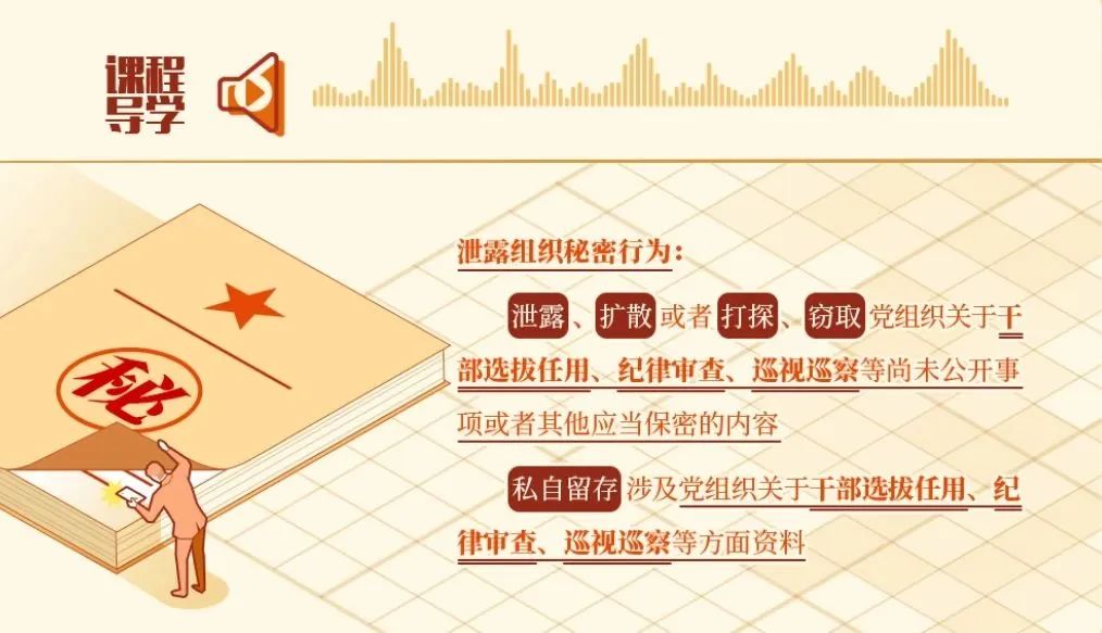 “严守党的纪律,保守党的秘密”,是每名党员入党宣誓时的郑重承诺。无论选人用人工作、纪律审查工作,还是巡视巡察等工作,都有严格的保密纪律。《党政领导干部选拔任用工作条例》规定,选拔任用党政领导干部,不准私自泄露研判、动议、民主推荐、民主测评、考察、酝酿、讨论决定干部等有关情况。《中国共产党纪律检查机关监督执纪工作规则》规定,监督执纪人员不准私自留存问题线索和涉案资料,严禁泄露审查调查工作情况,对纪检干部私存线索、跑风漏气、违反安全保密规定等违纪行为要严肃处理。《中国共产党巡视工作条例》规定,巡视工作人员私自留存巡视工作资料,泄露与巡视工作有关的未公开信息的,要给予处理处分。党员干部必须充分认识保守党的秘密的极端重要性和自身肩负的保密责任,对组织尚未公开的事项守口如瓶,自觉筑牢保密防线。