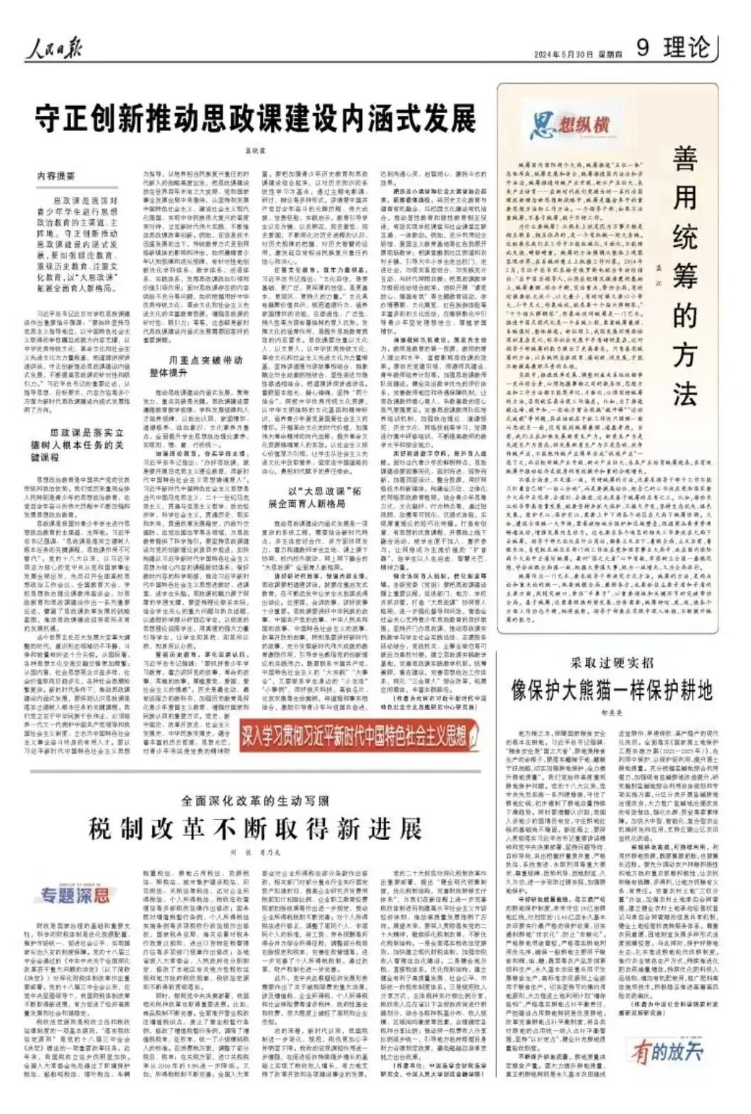 思政课是我国对青少年学生进行思想政治教育的主渠道、主阵地。守正创新推动思政课建设内涵式发展,要加强理论教育、重视历史教育、注重文化教育,以“大思政课”拓展全面育人新格局。