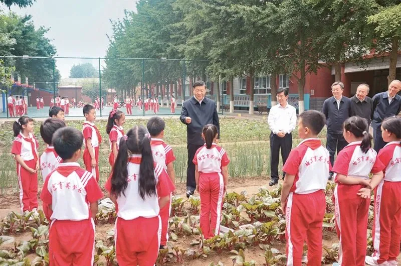 2023年5月31日上午,中共中央总书记、国家主席、中央军委主席习近平来到北京育英学校看望慰问师生,向全国广大少年儿童祝贺“六一”国际儿童节快乐。这是习近平在学生农场同正在进行农业种植实践的小学生们亲切交流。 新华社记者 鞠鹏/摄