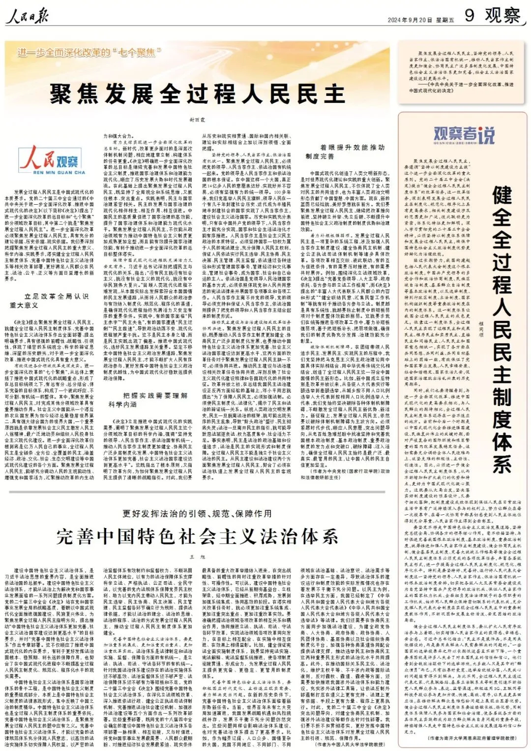 《决定》提出聚焦发展全过程人民民主,就健全全过程人民民主制度体系、完善中国特色社会主义法治体系作出全面部署、提出明确要求,具有很强的前瞻性、战略性、引领性,体现了缜密的系统观念、科学的辩证思维、深邃的历史眼光,对于进一步全面深化改革、推进中国式现代化具有重大意义。