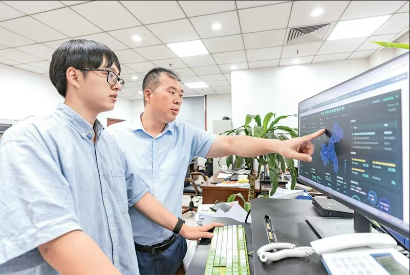 党的二十届三中全会《决定》指出,实施支持绿色低碳发展的财税、金融、投资、价格政策和标准体系,发展绿色低碳产业,健全绿色消费激励机制,促进绿色低碳循环发展经济体系建设。作为长江上游重要生态屏障以及全国首个全域开展绿色金融改革创新试验的省级经济体,重庆通过不断强化绿色金融能力建设、创新可持续金融产品等措施,推动当地产业结构绿色低碳转型和供应链绿色发展。图为2024年8月14日,中国人民银行重庆市分行工作人员在分析“长江绿融通”绿色金融服务系统监测的相关数据。 新华社记者 黄伟/摄