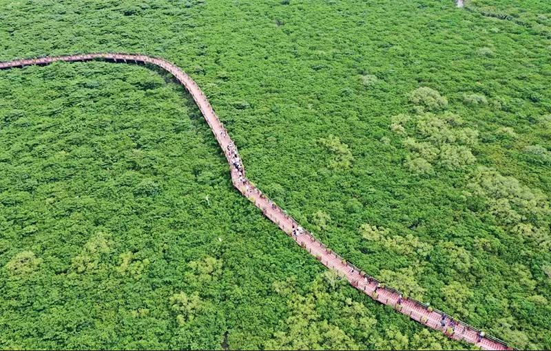推动绿色发展,建设生态文明,重在建章立制。近年来,广西北仑河口国家级自然保护区所在的广西防城港市建立红树林精细“管、护、研”一体化工作机制,全面开展巡护管理、科研监测、宣传教育、社区共管、生态修复等各项工作,有效推动红树林生态系统质量全面提升。图为2024年8月24日拍摄的广西北仑河口国家级自然保护区的红树林。 新华社记者 陆波岸/摄
