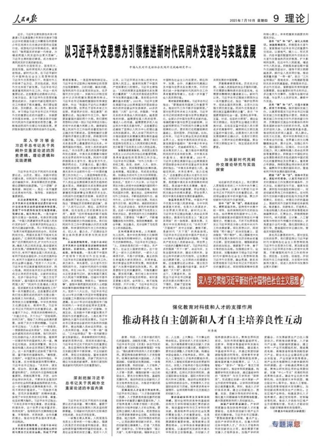 习近平总书记关于民间外交的重要论述内涵丰富、博大精深,着眼于国家关系的长远发展和人民友谊的深耕厚植,引领新时代民间外交取得历史性成就、发生历史性变革。
