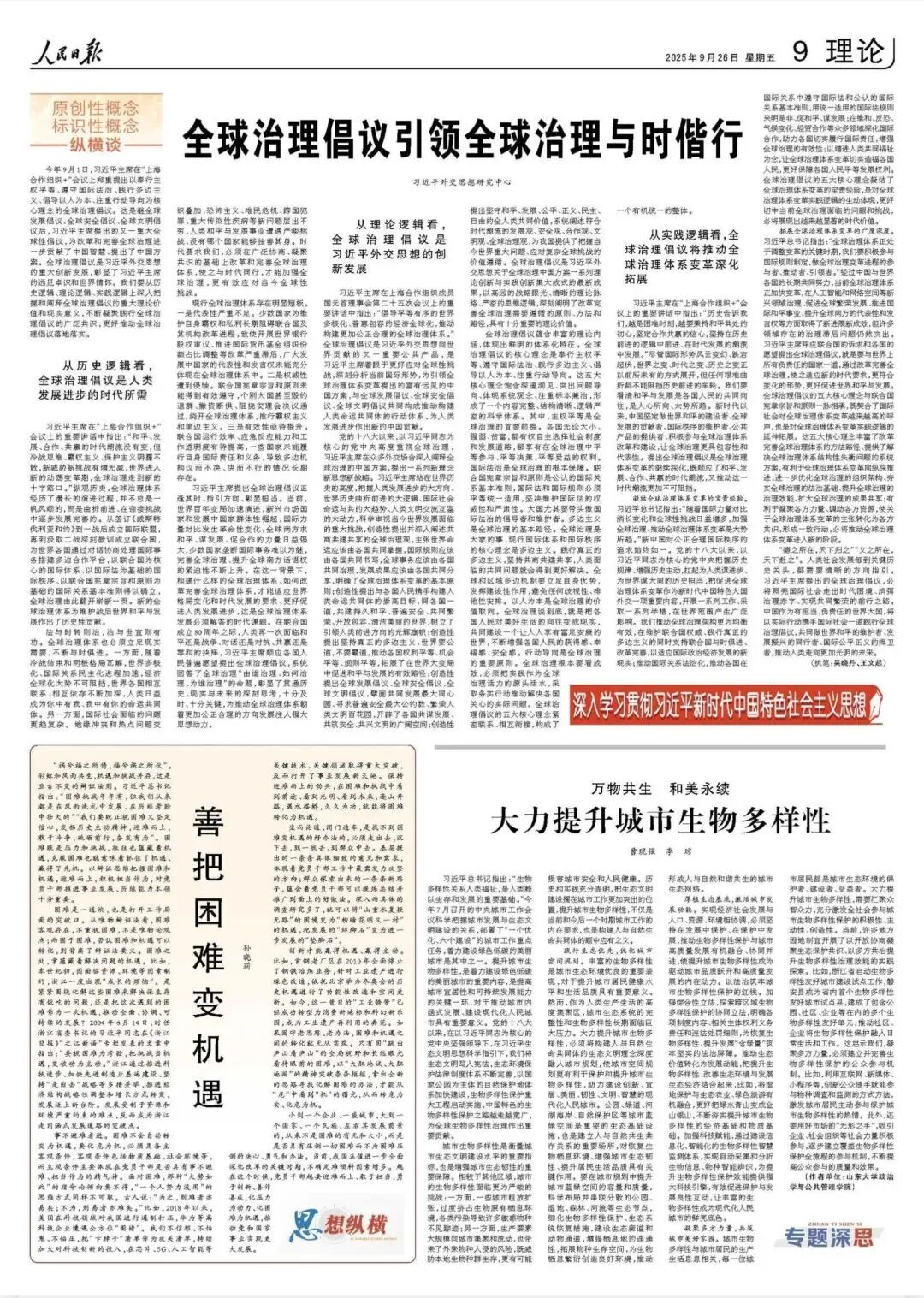 今年9月1日,习近平主席在“上海合作组织+”会议上郑重提出以奉行主权平等、遵守国际法治、践行多边主义、倡导以人为本、注重行动导向为核心理念的全球治理倡议。这是继全球发展倡议、全球安全倡议、全球文明倡议后,习近平主席提出的又一重大全球性倡议,为改革和完善全球治理进一步贡献了中国智慧、提出了中国方案。全球治理倡议是习近平外交思想的重大创新发展,彰显了习近平主席的远见卓识和世界情怀。我们要从历史逻辑、理论逻辑、实践逻辑上深入把握和阐释全球治理倡议的重大理论价值和现实意义,不断凝聚践行全球治理倡议的广泛共识,更好推动全球治理倡议落地落实。