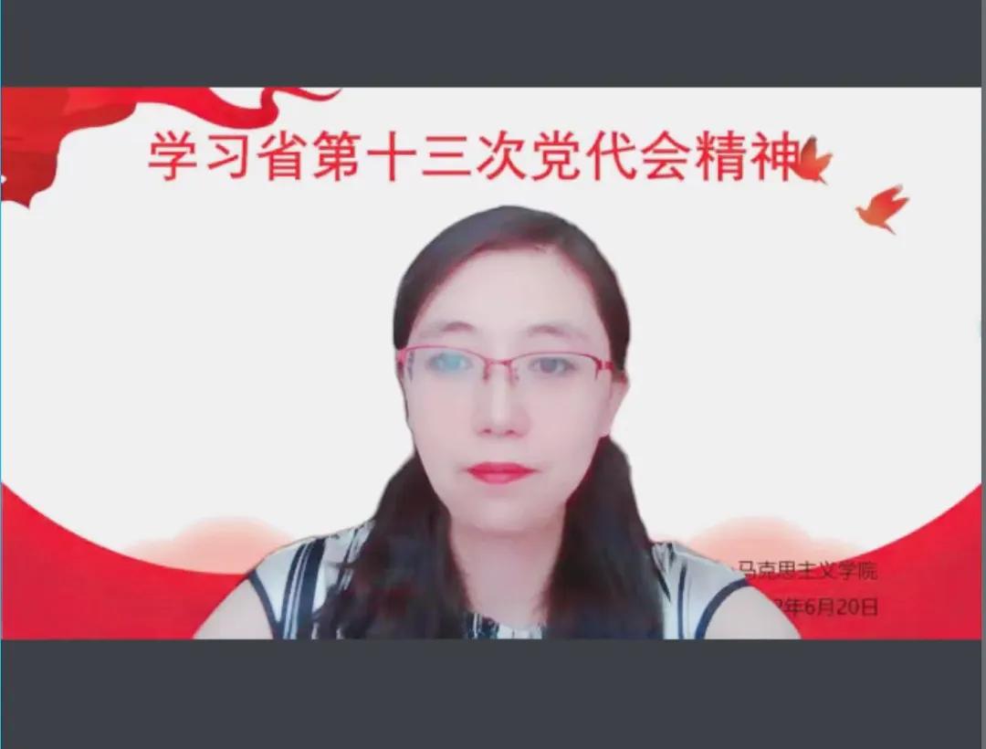 马克思主义学院党委副书记、基础纲要教研室党支部书记宁晓艳作题为《回顾辉煌成就砥砺奋进征程》主题党课,从八个方面总结了过去五年全面建成小康社会,全省各项事业取得的新成就。