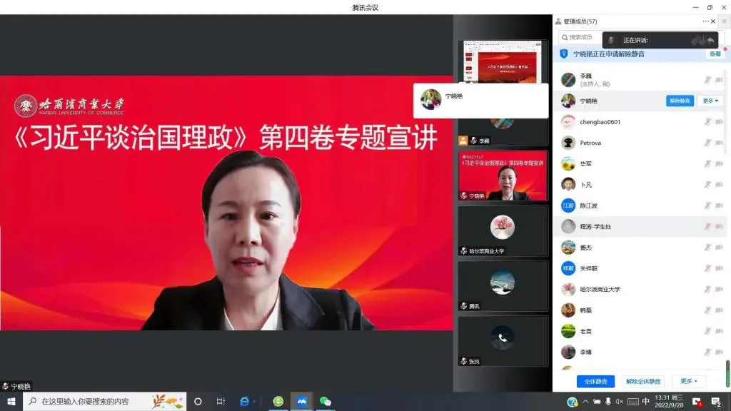 马克思主义学院党委副书记宁晓艳围绕“坚持党的全面领导”专题,面向机关党委、马克思主义学院党委作专题宣讲。