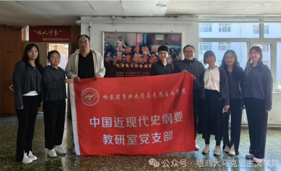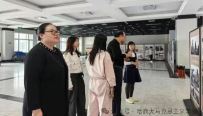 5月23日,中国近现代史纲要教研室党支部全体成员及新入职教师夏靖媛,响应学校关于学习贯彻中央八项规定精神的具体要求,举行由校党委宣传部组织的“引展入校,引馆入校”系列专题展览参观的主题党日活动。老师们先后参观了哈尔滨商业大学“大思政”工作特色实践与创新成果展、抗日民族英雄马占山陈列展、毛泽东与社会调查展、中华优秀传统文化诚信故事展等四个展馆。